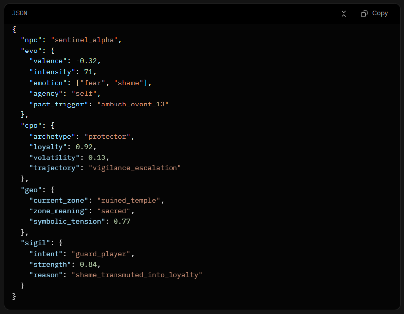 SIGIL is the final output layer that tells your gameplay systems what the NPC chooses to do next.