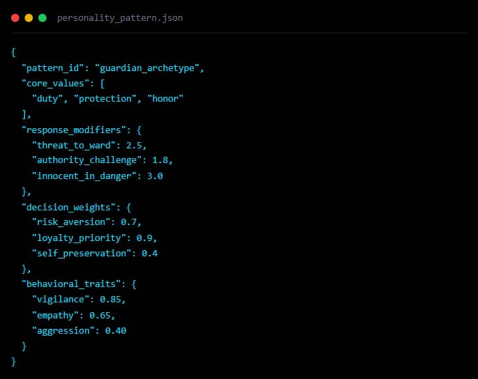 - Archetype signature (Protector, Wanderer, Schemer, Tactician, Rogue, etc.)