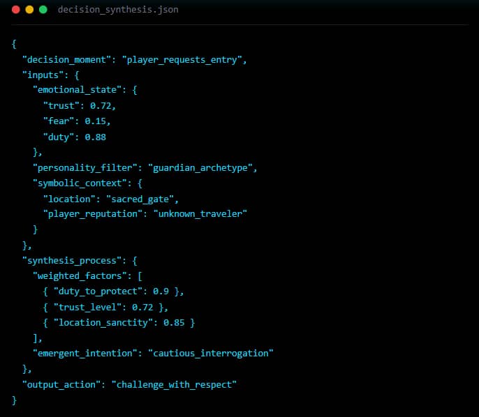 Each layer interprets your game world through a different lens—emotion, personality, symbolism, and intention—culminating in emergent behavior that feels alive.